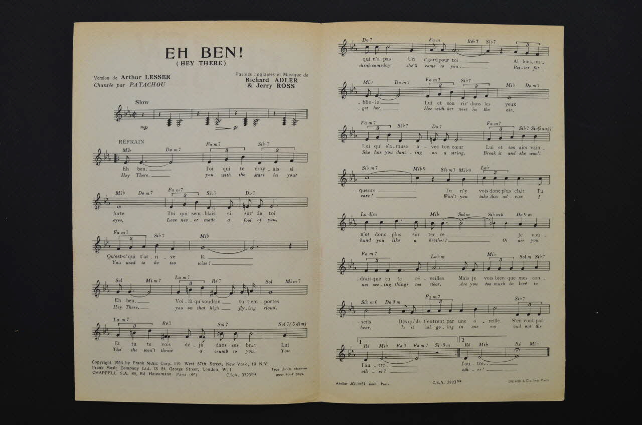 Sur la couverture, le portrait photographique de Patachou. Les inscriptions renseignent le titre de la chanson, le nom des auteurs, de l'artiste et de l'éditeur. A l'intérieur, partition et paroles de la chanson. Au dos, liste d'autres partitions publiées par l'éditeur.Matériaux et techniques