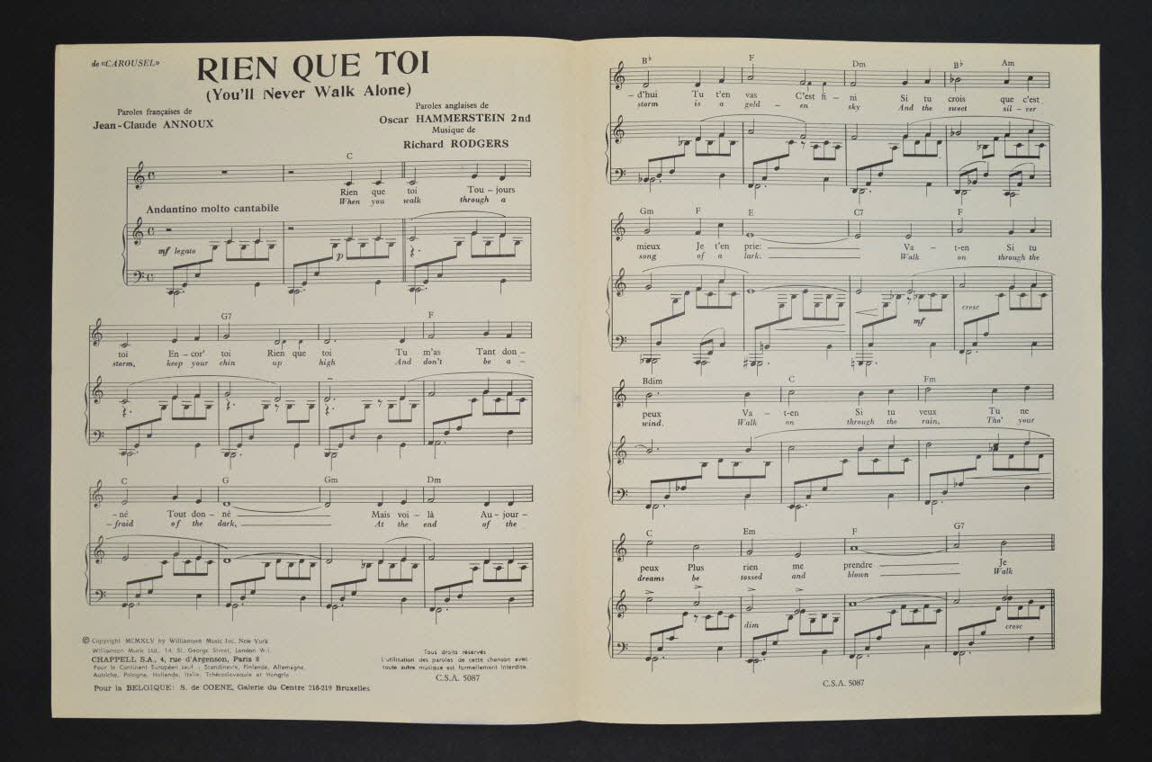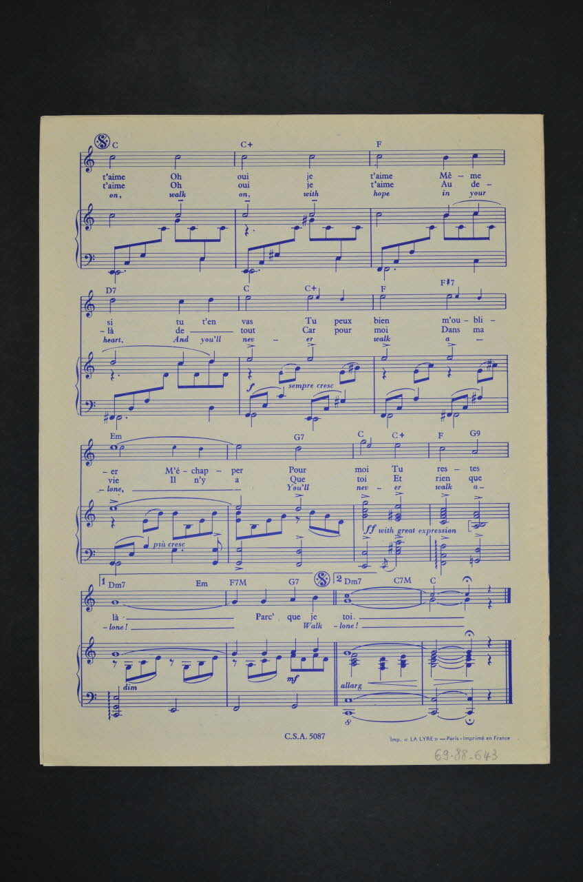 Des inscriptions renseignent le titre, les auteurs, les exécutants et l'éditeur. A l'intérieur et au dos, partition et paroles de la chanson.Matériaux et techniques