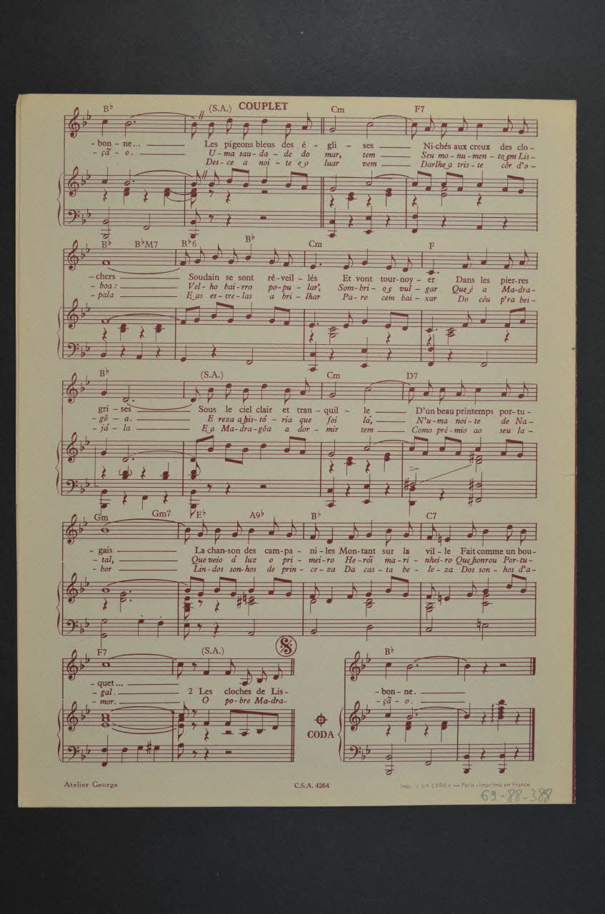 chanson, petit format, partition de musique, Les cloches de Lisbonne