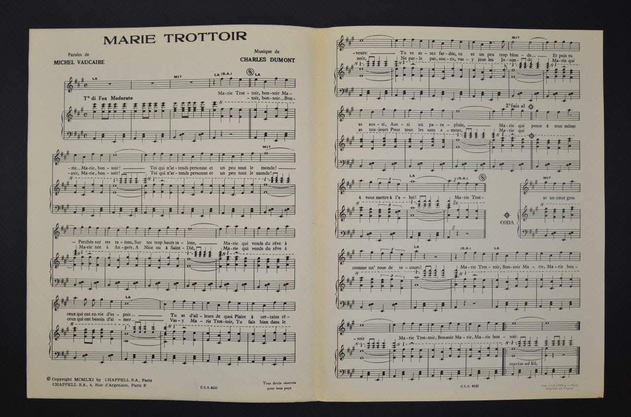 chanson, partition de musique, petit format, Marie trottoir