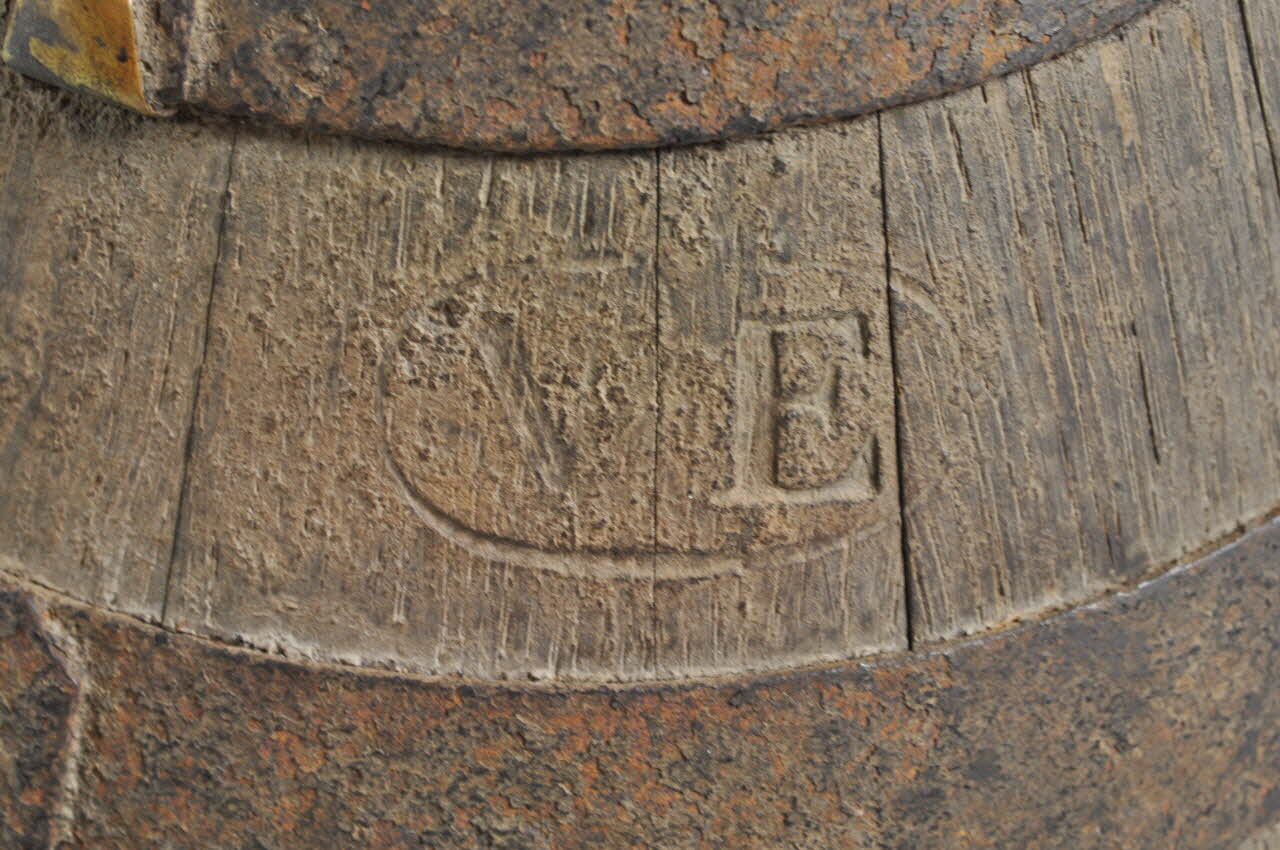 Sur plan circulaire, de forme pansue, à douelles en bois maintenues par quatres cercles. Poignée verticale en cuivre.Matériaux et techniques