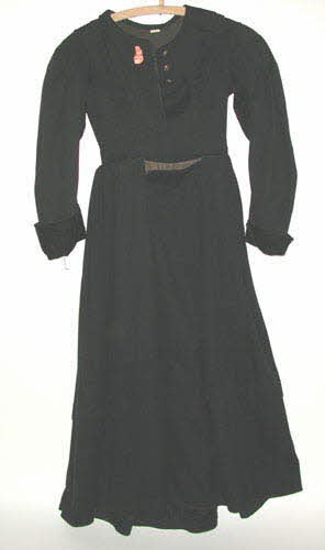 Tissu de laine, teint, foulé; toile de coton. / Robe en drap noir.
