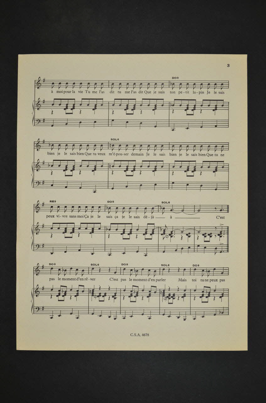 Les inscriptions renseignent le titre de la chanson, le nom des auteurs, de l'artiste et de l'éditeur. A l'intérieur et sur le feuillet mobile inséré, la partition et les paroles de la chanson. Au dos, liste d?autres partitions publiées par l?éditeur.Matériaux et techniques