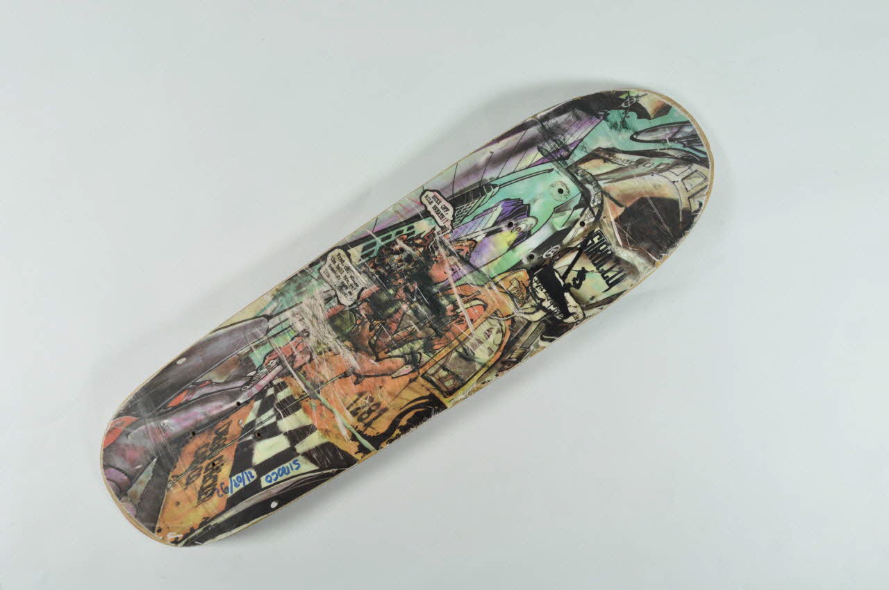 Lieu : FranceDate : 1992Planche de skateboard utilisée durant une courte période car présentant un défaut. Planche retournée au distributeur (Vaissette).