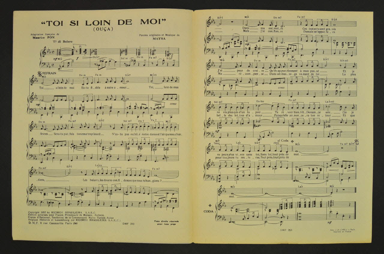partition de musique, chanson, petit format, Toi, si loin de moi (ouça)