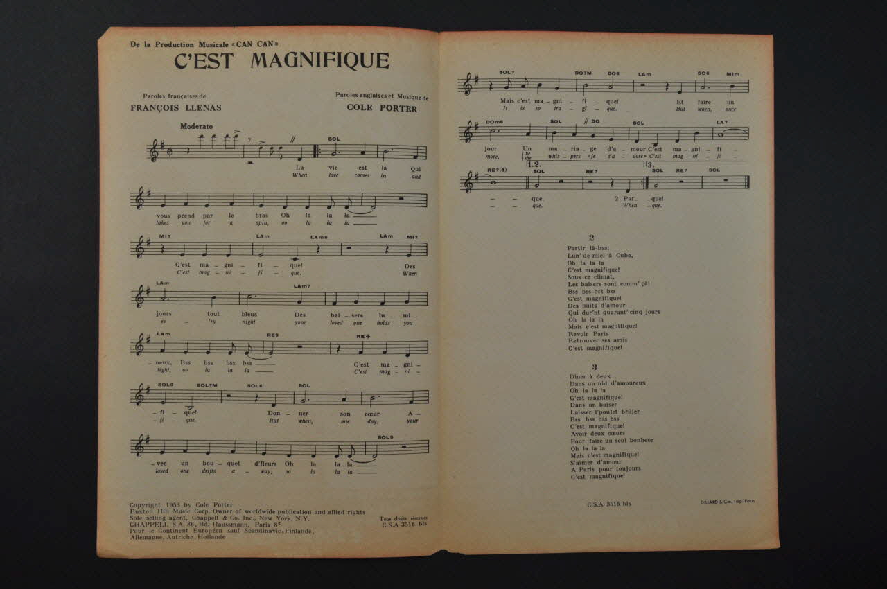 chanson, partition de musique, petit format, C'est magnifique