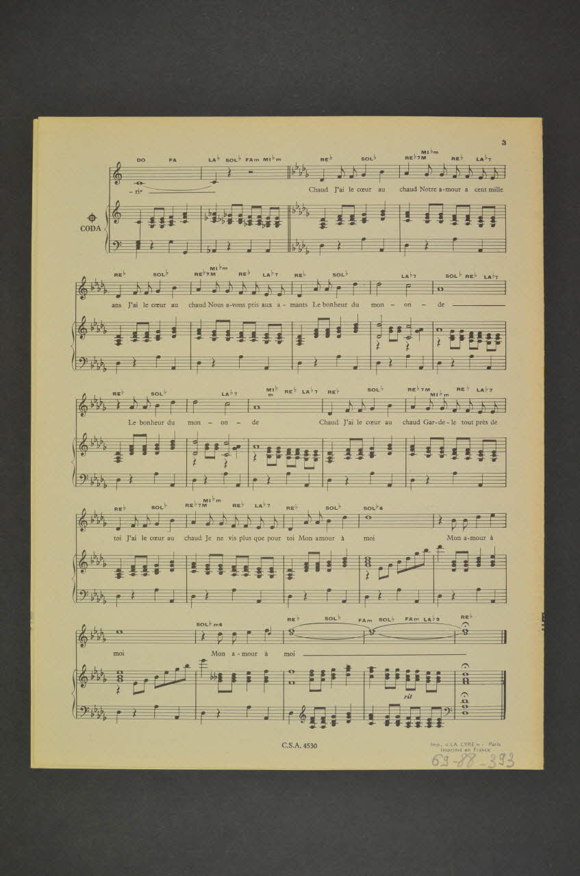 partition de musique, chanson, petit format, Le Coeur au chaud