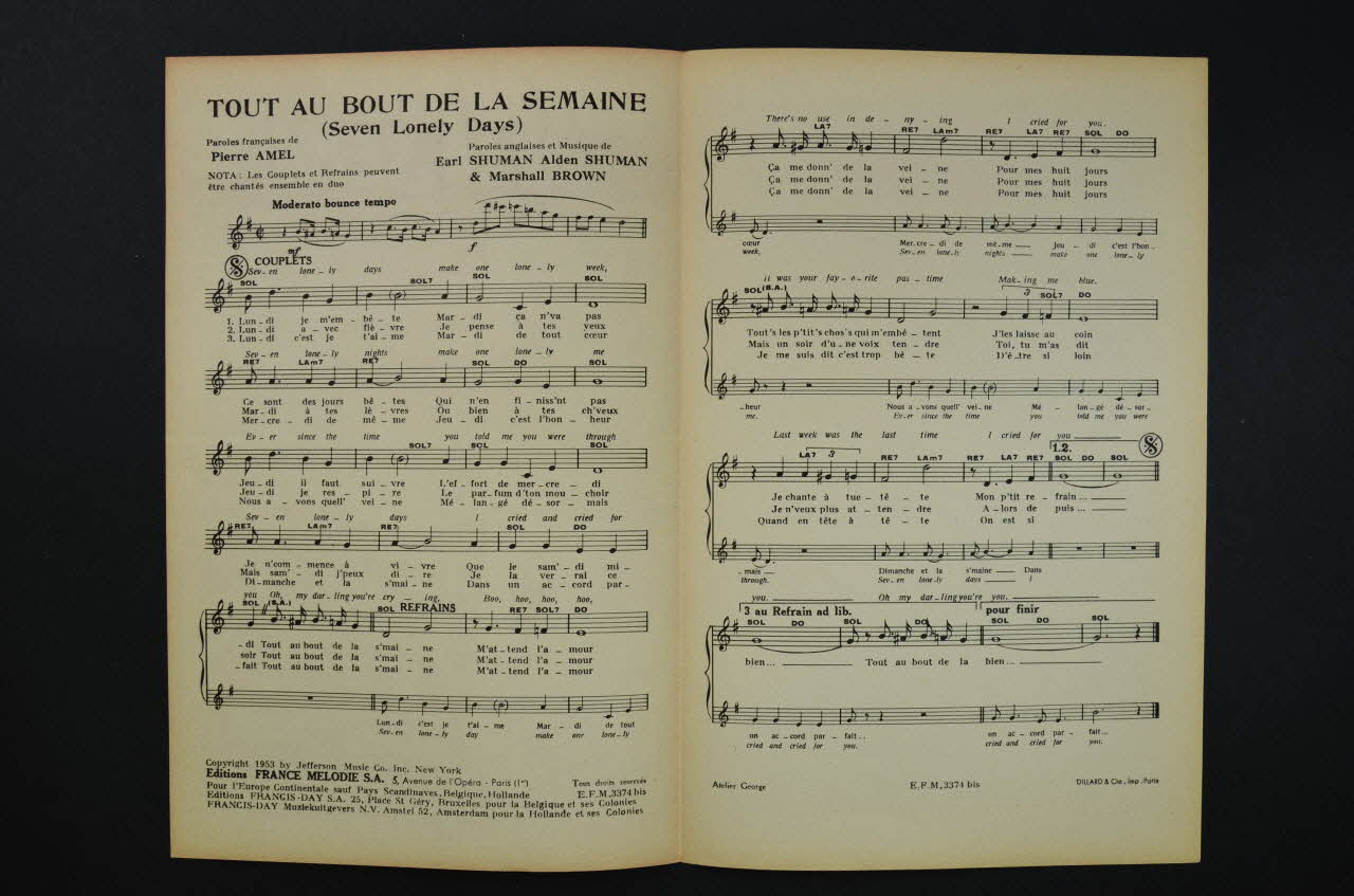 chanson, petit format, partition de musique, Tout au bout de la semaine