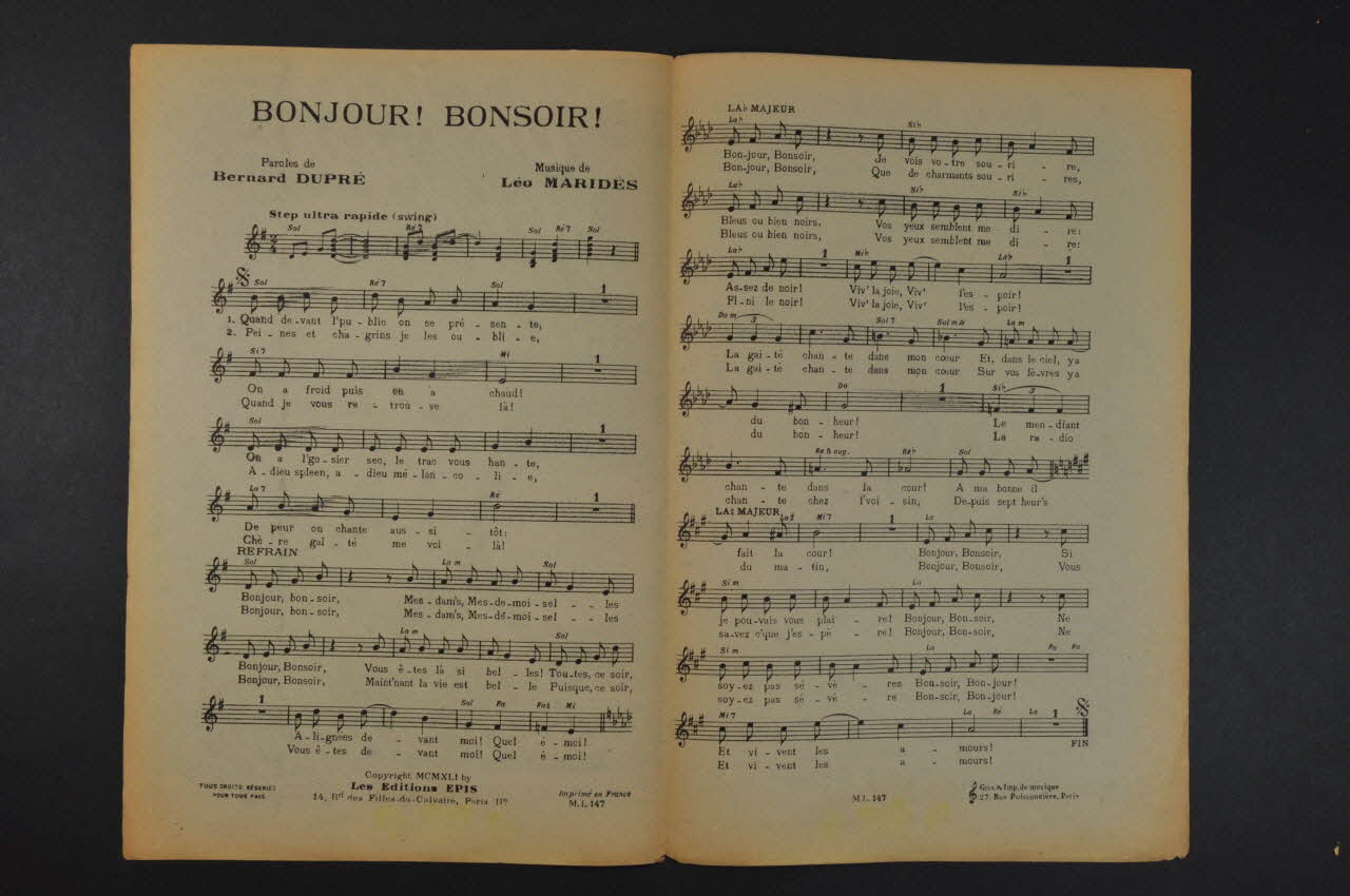 chanson, partition de musique, petit format, Bonjour ! Bonsoir !
