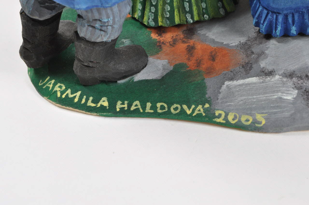 Lieu : République TchèqueDate : 2004Ce groupe sculpté témoigne du goût actuel à utiliser la crèche comme support de messages personnels ou à y introduire des personnages réels et des proches.