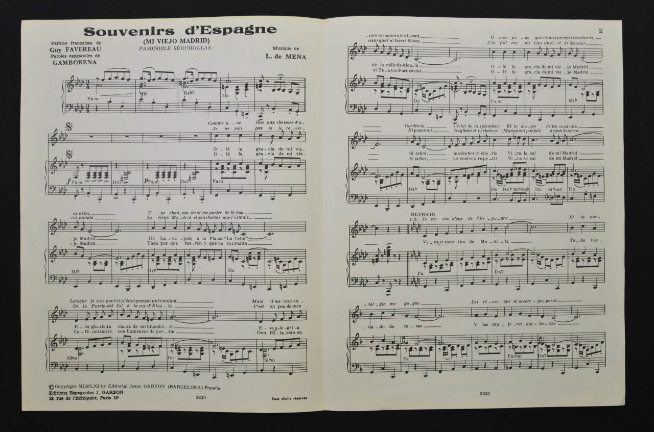 chanson, petit format, partition de musique, Souvenirs d'Espagne