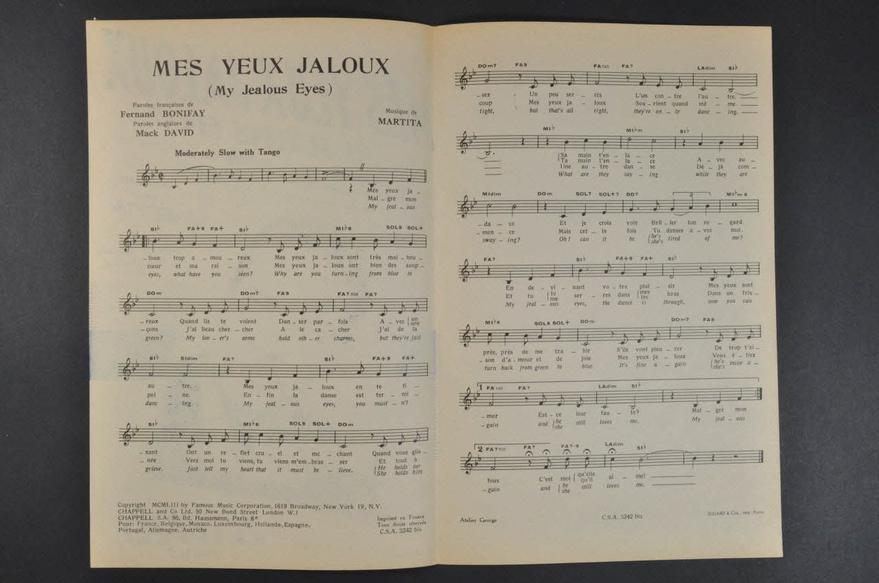 partition de musique, chanson, petit format, Mes yeux jaloux