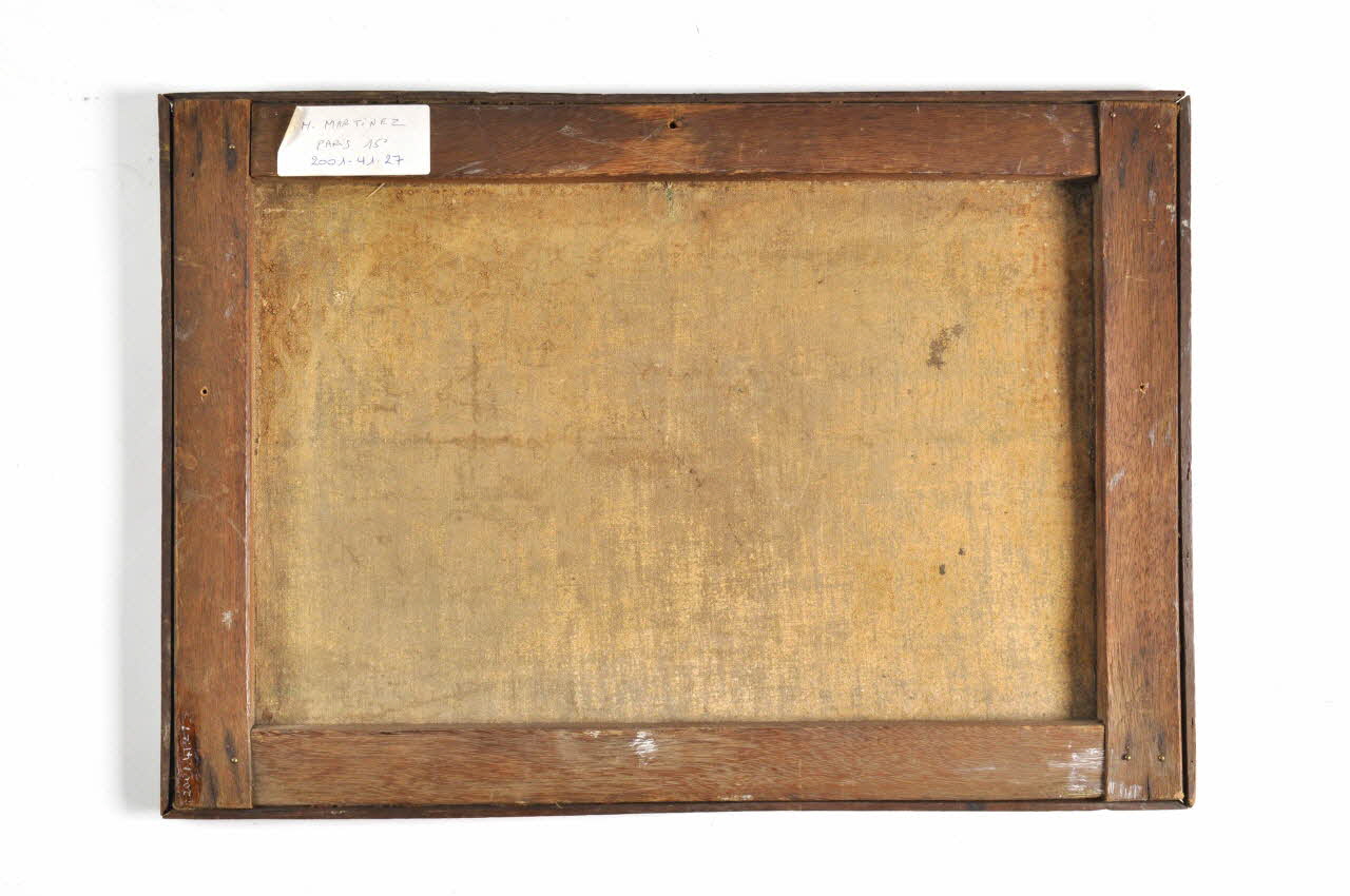H. MARTINEZ // PARIS 15e (Etiquette blanche manuscrite de format rectangulaire située sur le montant supérieur gauche du châssis.), en haut à gaucheDécor