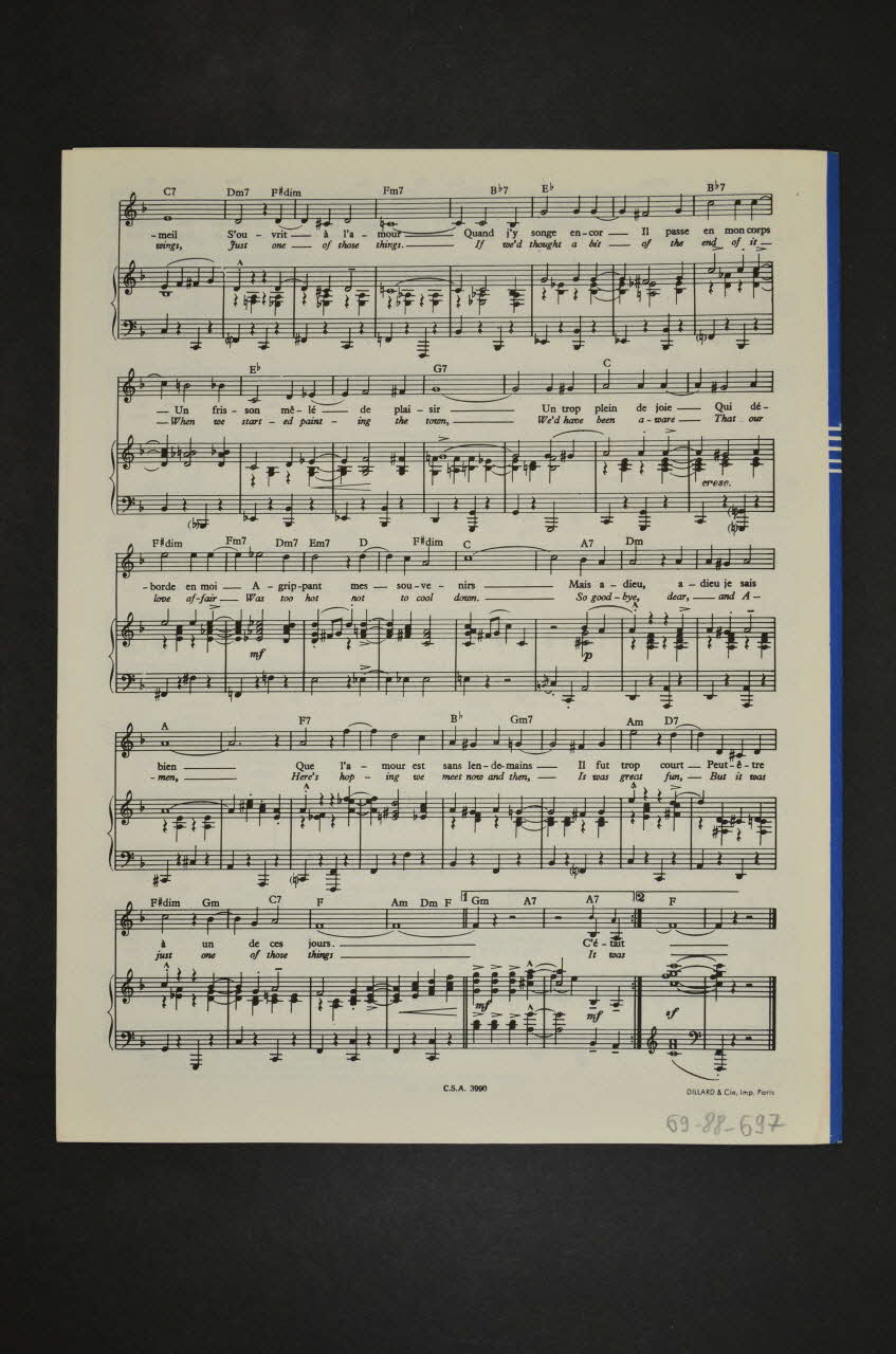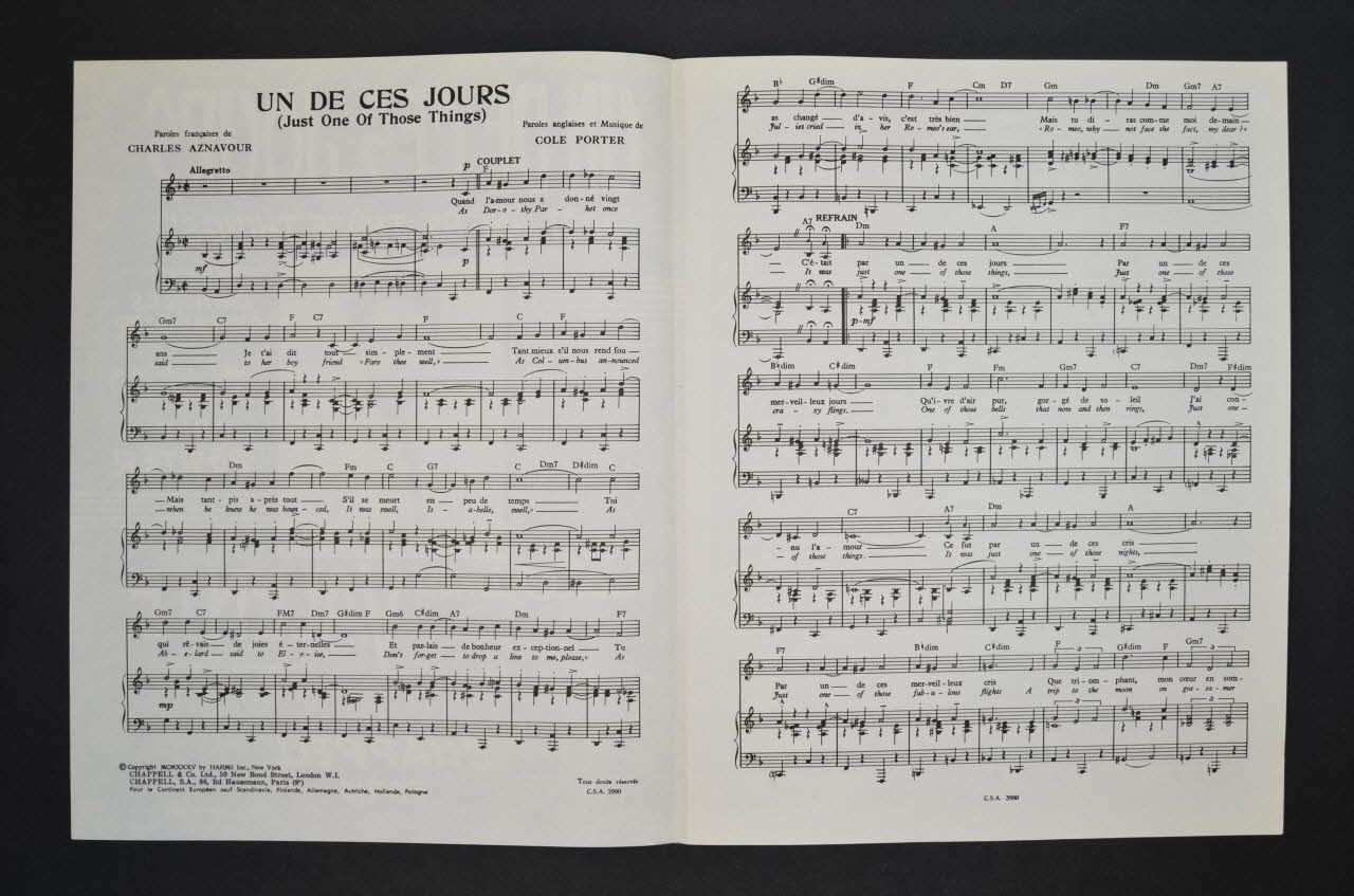 Les inscriptions renseignent le titre de la chanson, le nom des auteurs, de l'artiste et de l'éditeur. A l'intérieur et au dos, la partition et les paroles de la chanson.Matériaux et techniques