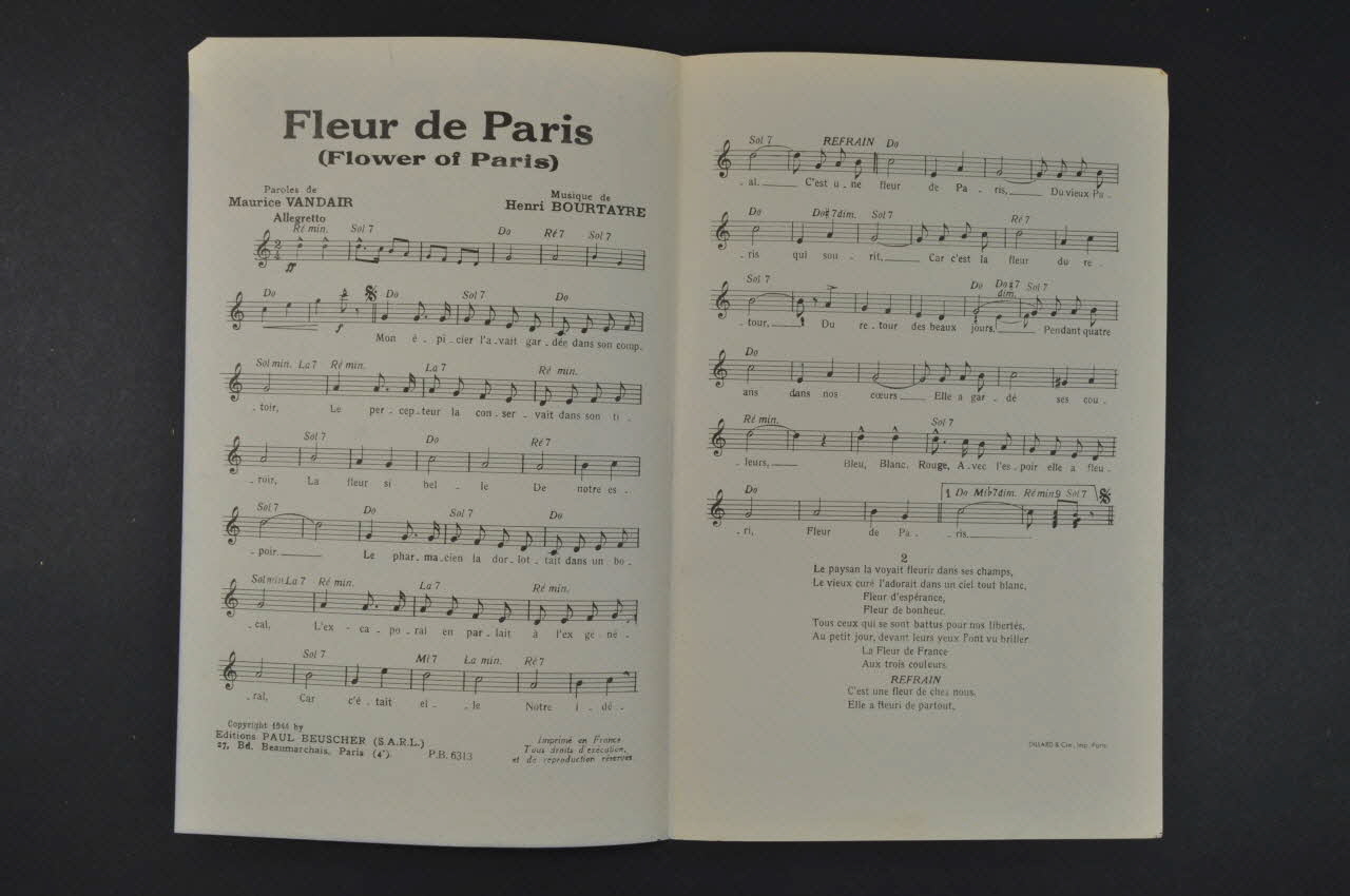 Des inscriptions renseignent le titre, les auteurs, les exécutants et l'éditeur. A l'intérieur, partition et paroles de la chanson. Au dos, liste d'autres partitions publiées par l'éditeur.Matériaux et techniques
