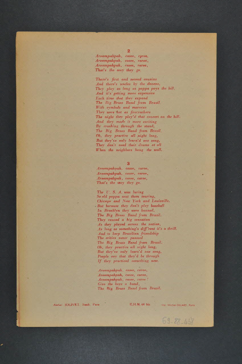 partition de musique, chanson, petit format, La Grande fanfare du Brésil