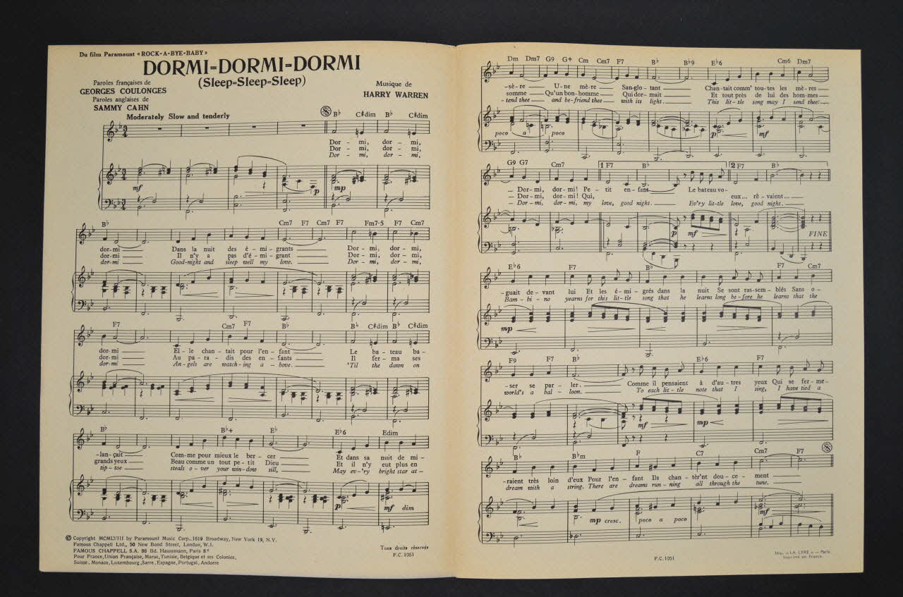 Des inscriptions renseignent le titre, les auteurs, les exécutants et l'éditeur. A l'intérieur, partition et paroles de la chanson. Au dos, liste d'autres partitions publiées par l'éditeur.Matériaux et techniques