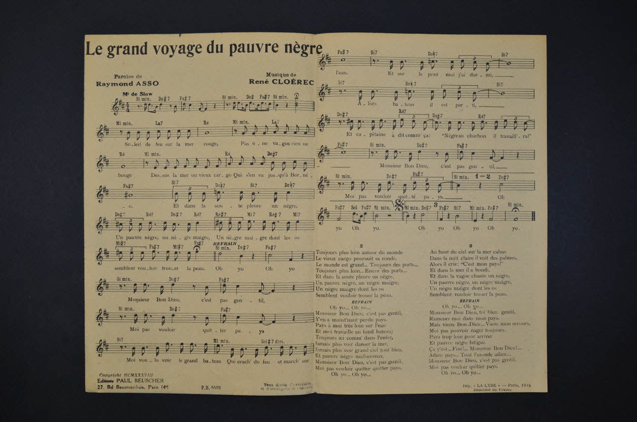 chanson, partition de musique, petit format, Le grand voyage du pauvre nègre