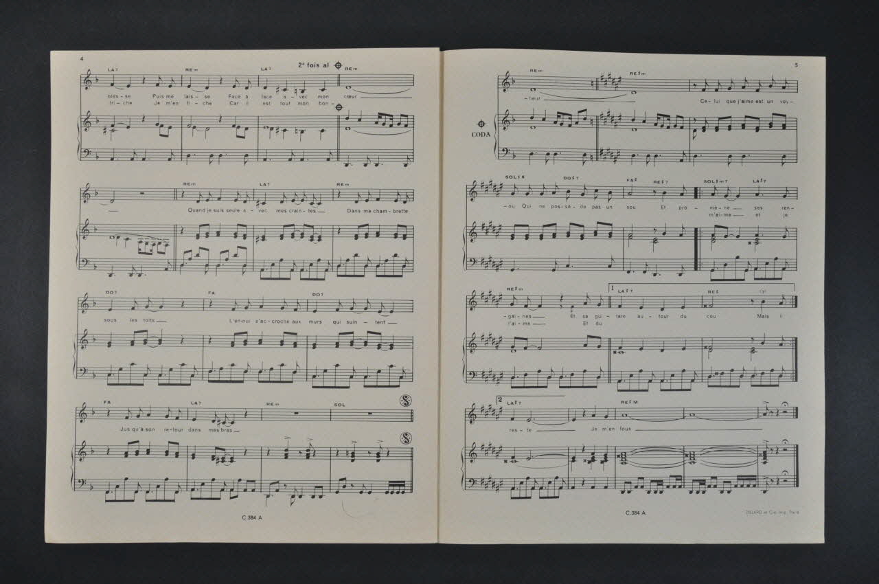 Des inscriptions renseignent le titre, les auteurs, les exécutants et l'éditeur. A l'intérieur, partition et paroles de la chanson. Au dos, liste d'autres partitions publiées par l'éditeur.Matériaux et techniques