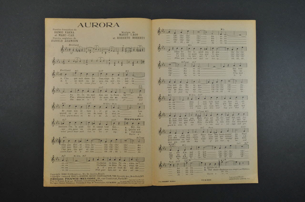 partition de musique, chanson, petit format, Aurora