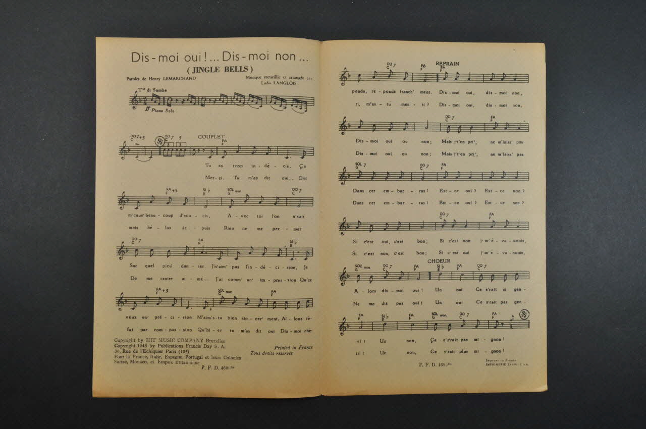 partition de musique, chanson, petit format, Dis-moi oui ! Dis-moi non !