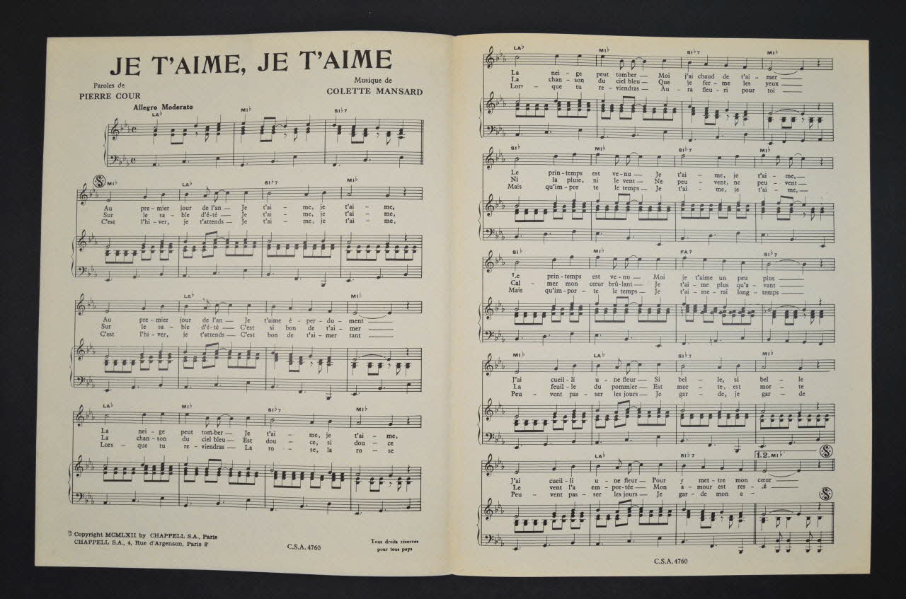 partition de musique, chanson, petit format, Je t'aime Je t'aime