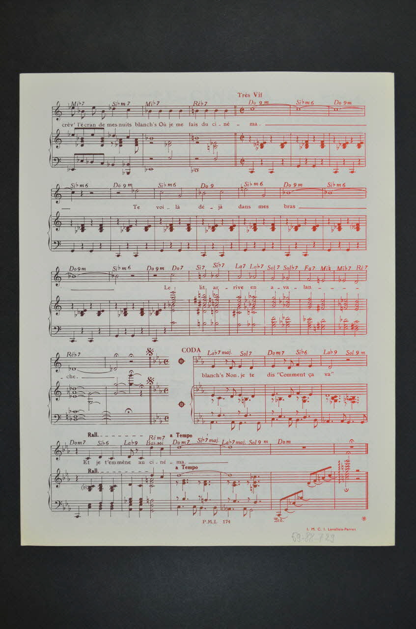 Des inscriptions renseignent le titre, les auteurs, les exécutants et l'éditeur. A l'intérieur et au dos, la partition et paroles de la chanson.Matériaux et techniques