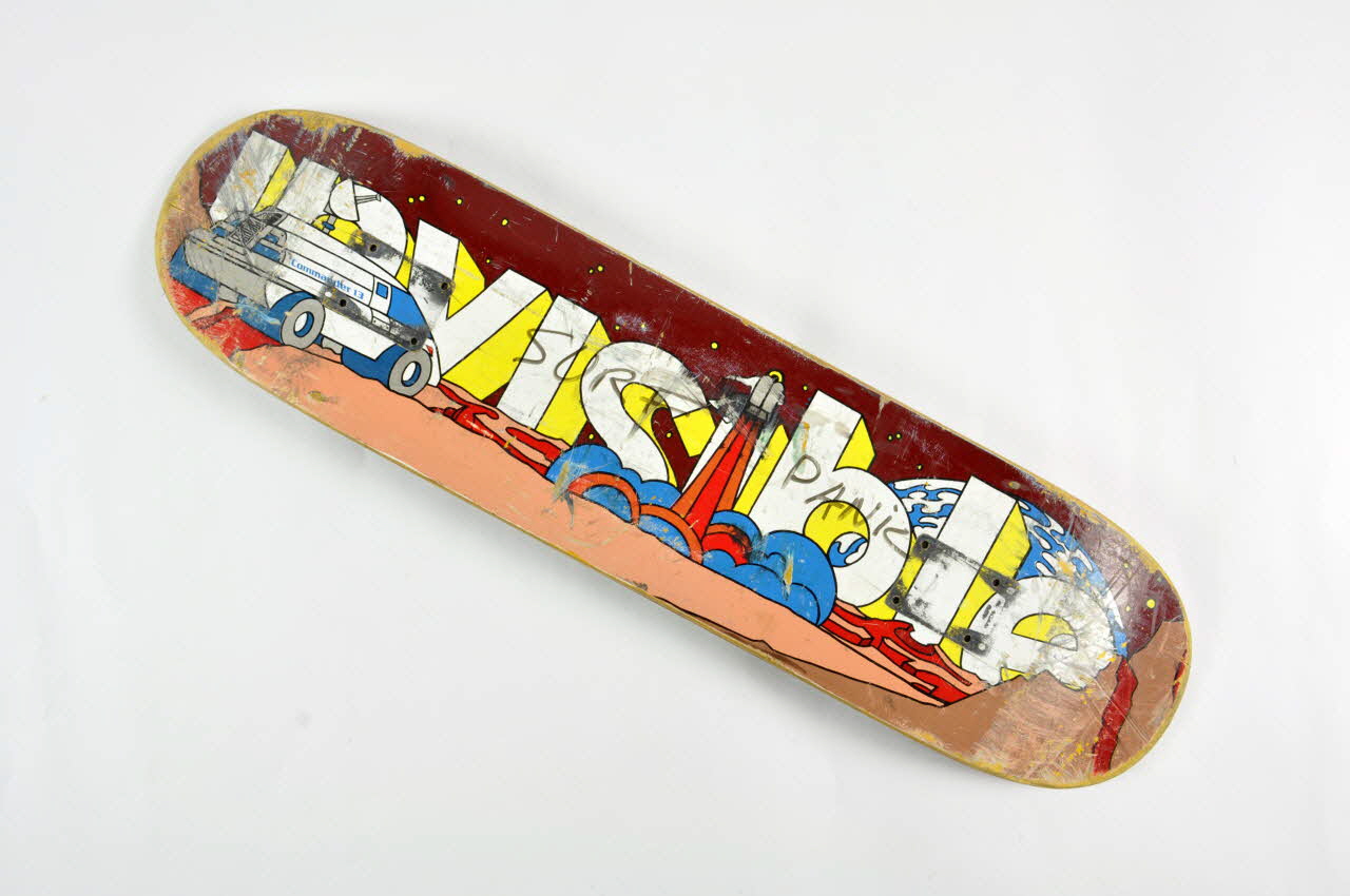 Lieu : FranceDate : 1991 - 1999Planche de skateboard utilisée durant une courte période car présentant un défaut. Planche retournée au distributeur (Vaissette).