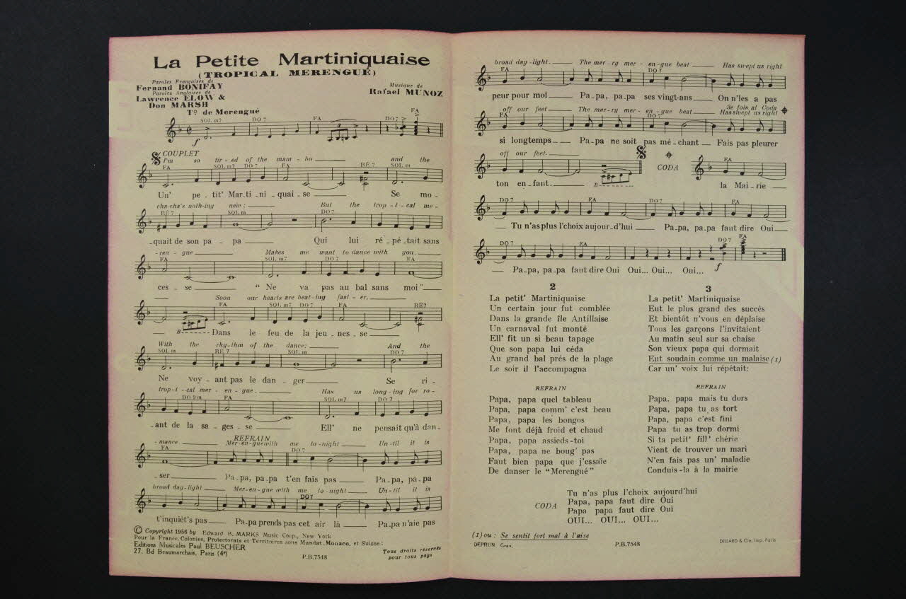 chanson, petit format, partition de musique, La petite martiniquaise