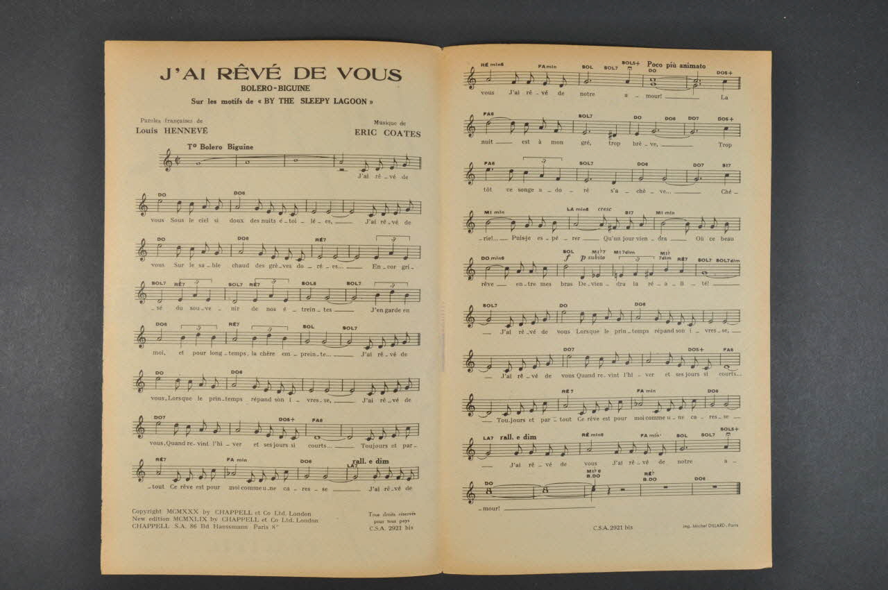 partition de musique, chanson, petit format, J'ai rêvé de vous