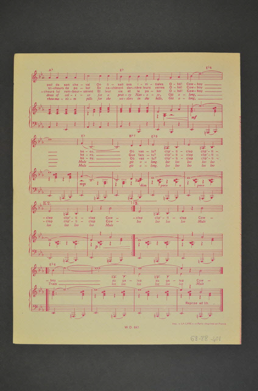 partition de musique, chanson, petit format, Cow-boy