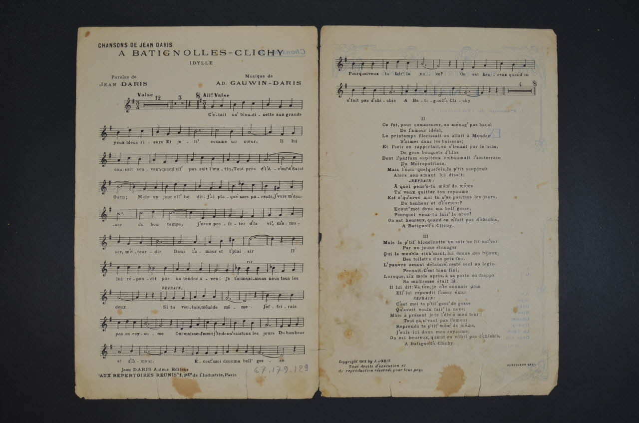 chanson, partition de musique, petit format, A Batignolles-Clichy