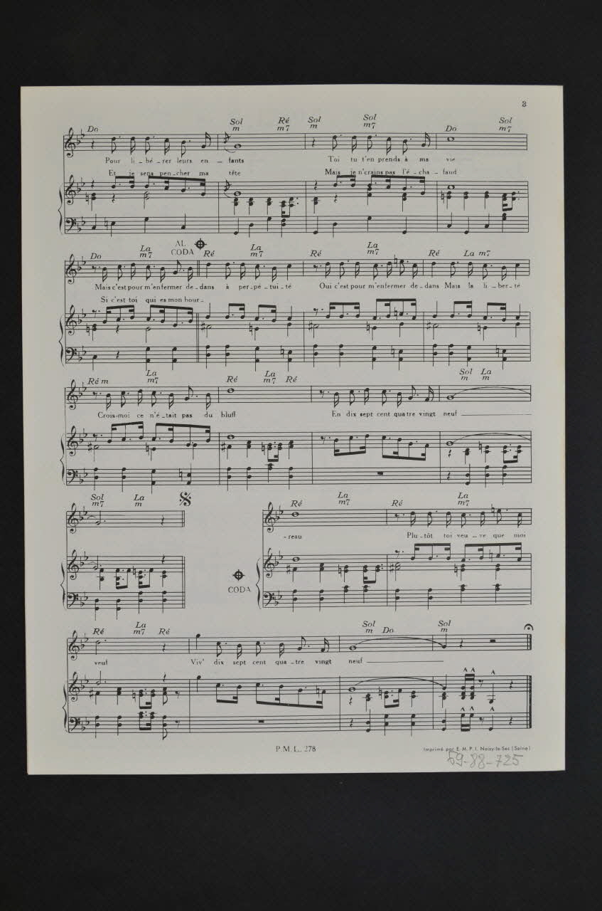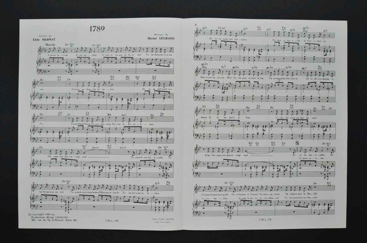 chanson, petit format, partition de musique, 1789