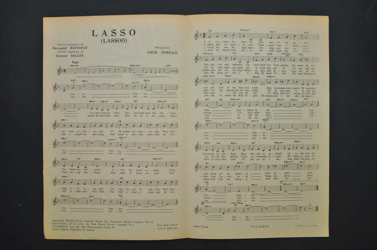 Sur la couverture, le portrait photographique de Marcel Merkès. Les inscriptions renseignent le titre de la chanson, le nom des auteurs, de l'artiste et de l'éditeur. A l'intérieur, partition et paroles de la chanson. Au dos, liste d'autres partitions publiées par l'éditeur.Matériaux et techniques