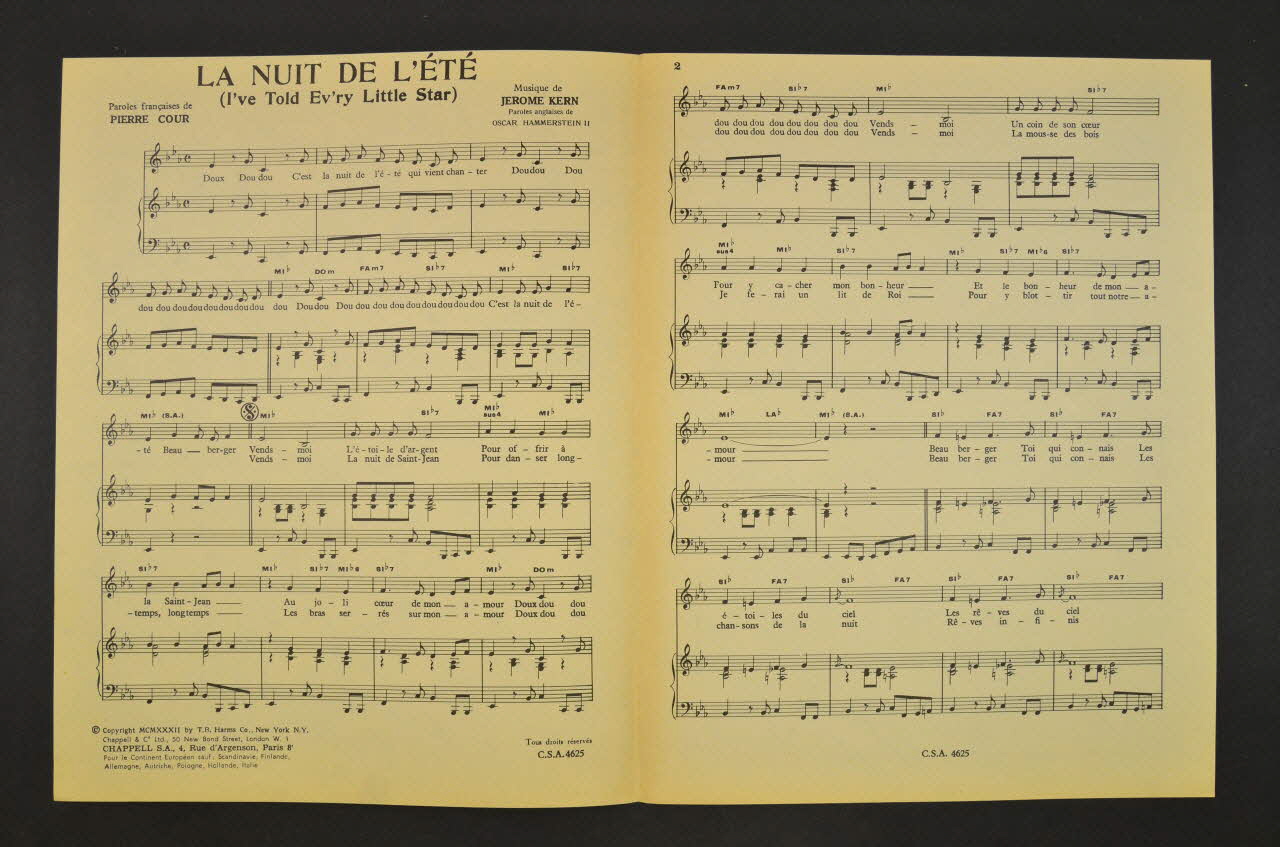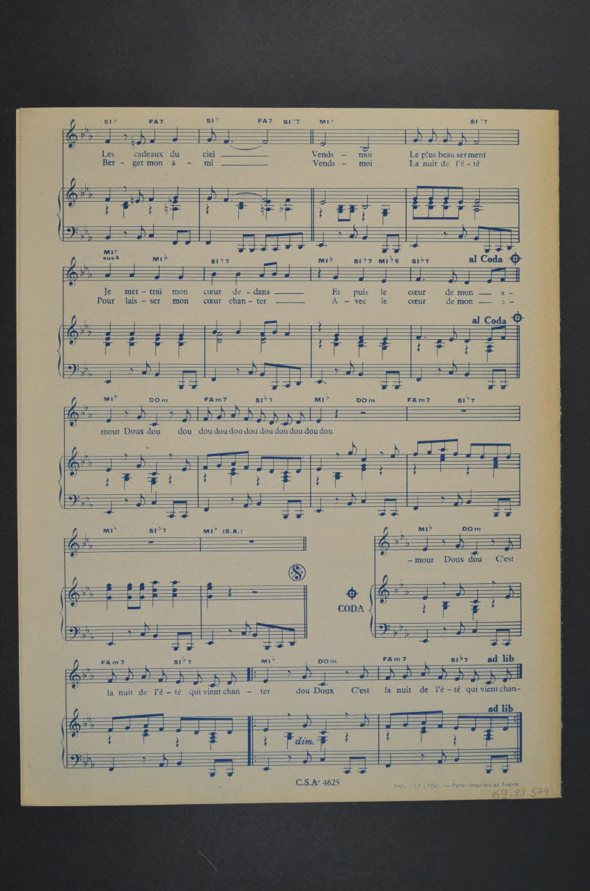 Sur la couverture, le portrait photographique de Jean-Paul Mauric et étoiles à cinq branches. Les inscriptions renseignent le titre de la chanson, le nom des auteurs, de l'artiste et de l'éditeur. A l'intérieur et au dos, partition et paroles de la chanson.Matériaux et techniques