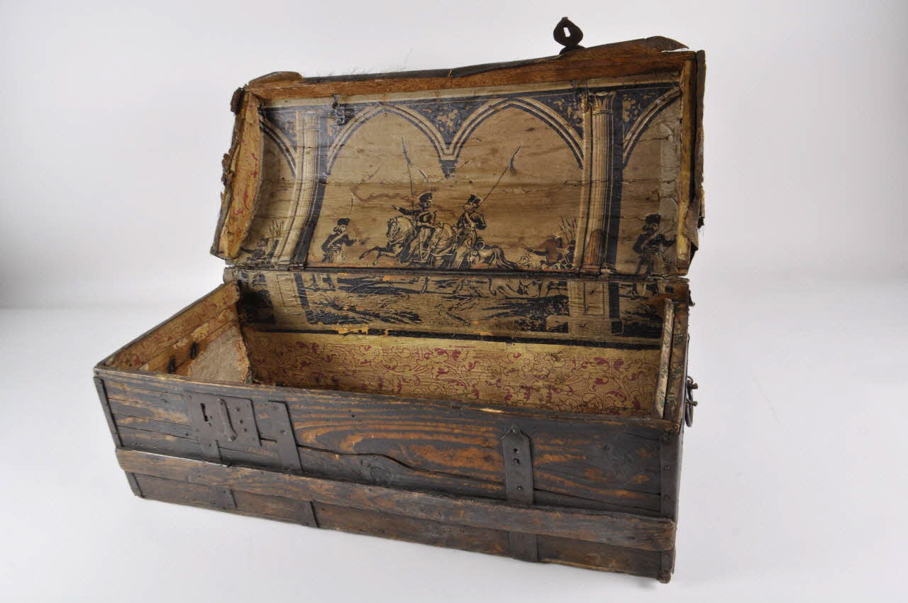 Lieu : RussieDate : 1815Le papier peint est daté de 1815, tandis que la malle daterait du 18e siècle