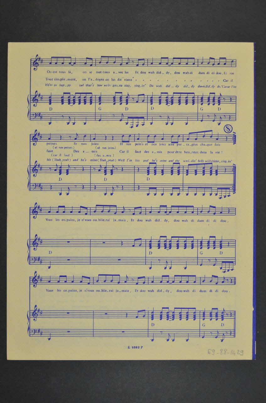 Des inscriptions renseignent le titre, les auteurs, les exécutants et l'éditeur. A l'intérieur et au dos, la partition et paroles de la chanson.Matériaux et techniques