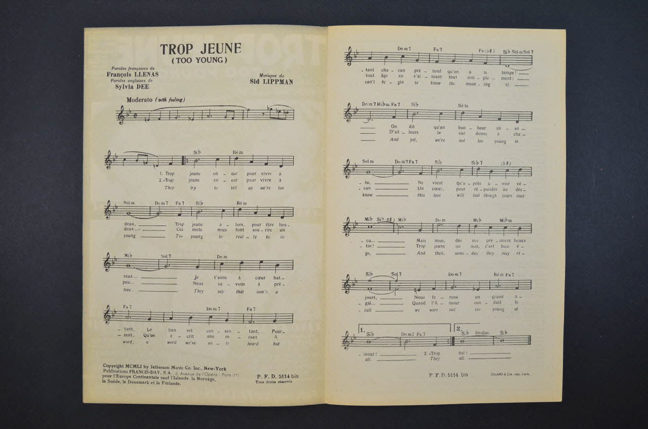 chanson, petit format, partition de musique, Trop jeune