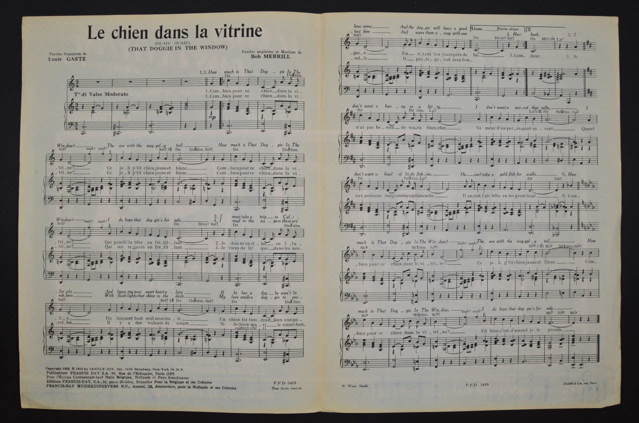 chanson, partition de musique, petit format, Le Chien dans la vitrine
