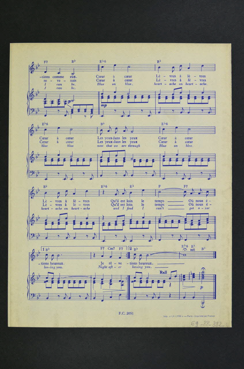 chanson, petit format, partition de musique, Coeur à coeur