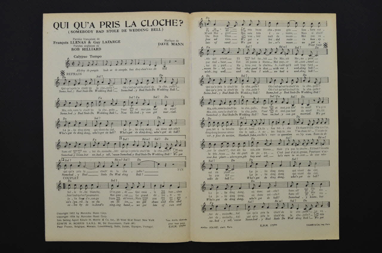 chanson, petit format, partition de musique, Qui qu'a pris la cloche ?