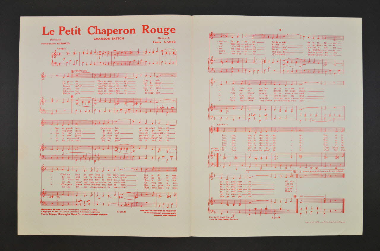 chanson, petit format, partition de musique, Le Petit Chaperon rouge