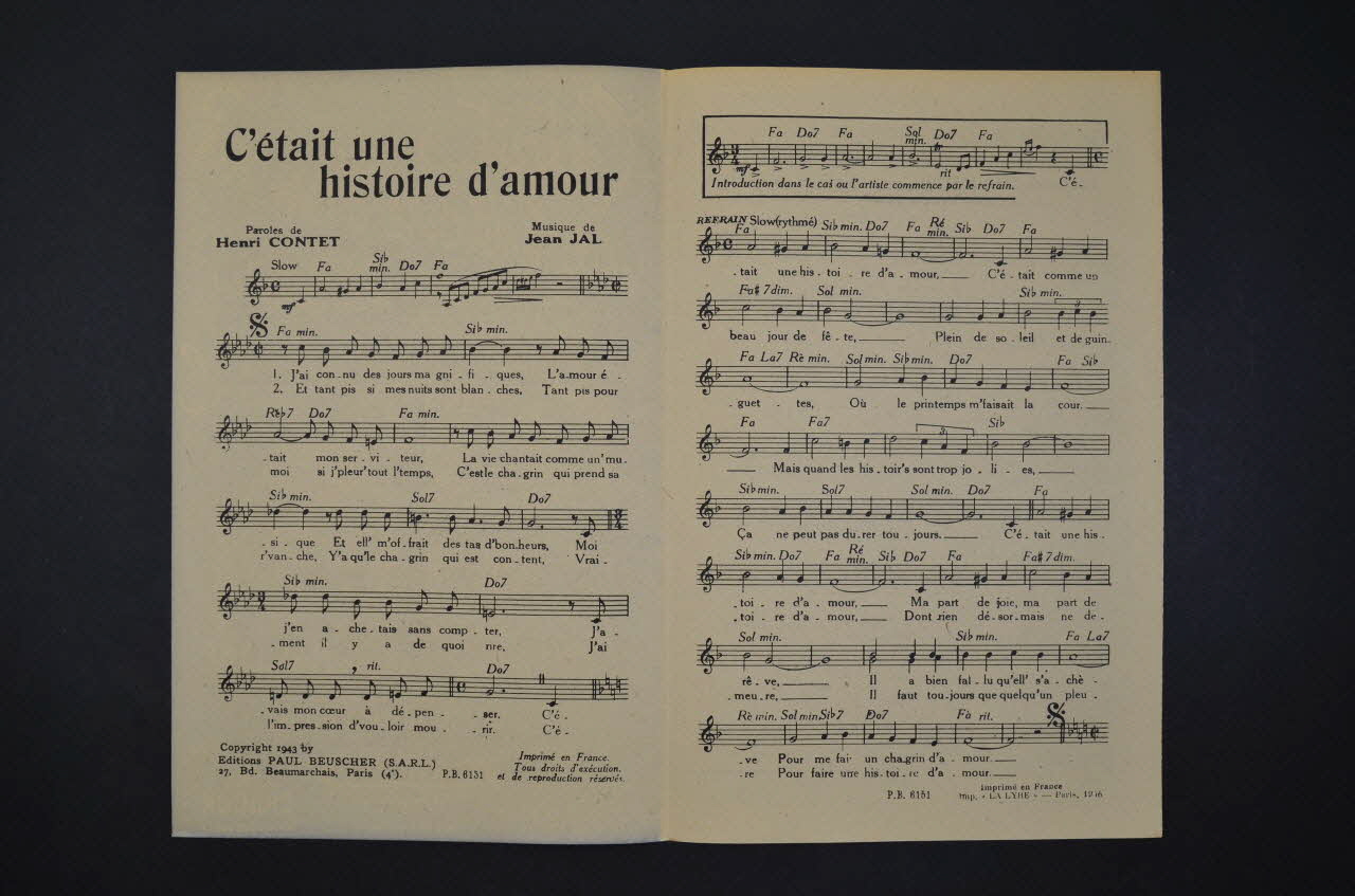 chanson, partition de musique, petit format, C'était une histoire d'amour