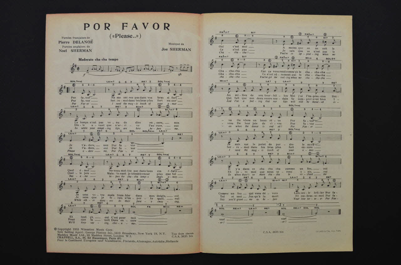 chanson, petit format, partition de musique, Por favor