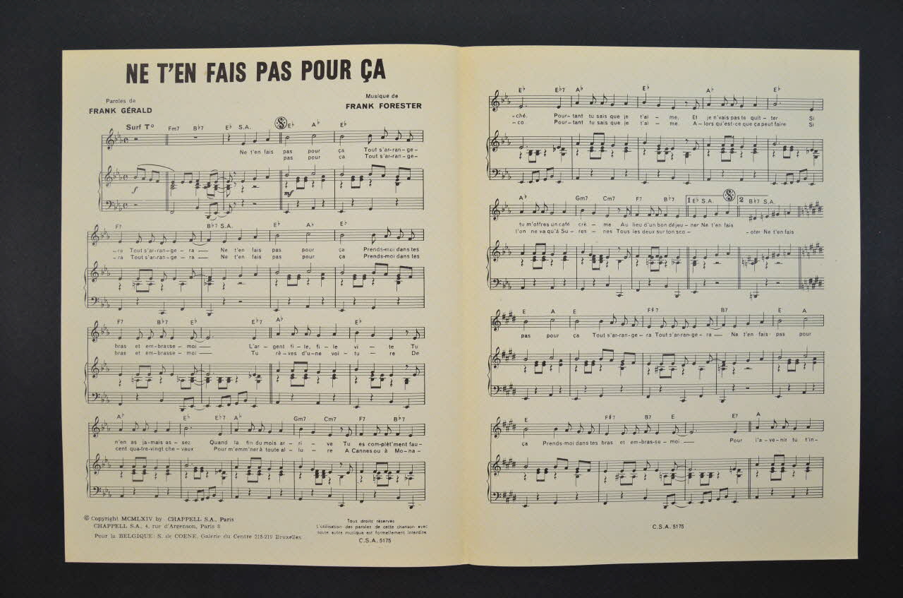 chanson, petit format, partition de musique, Ne t'en fais pas pour ça