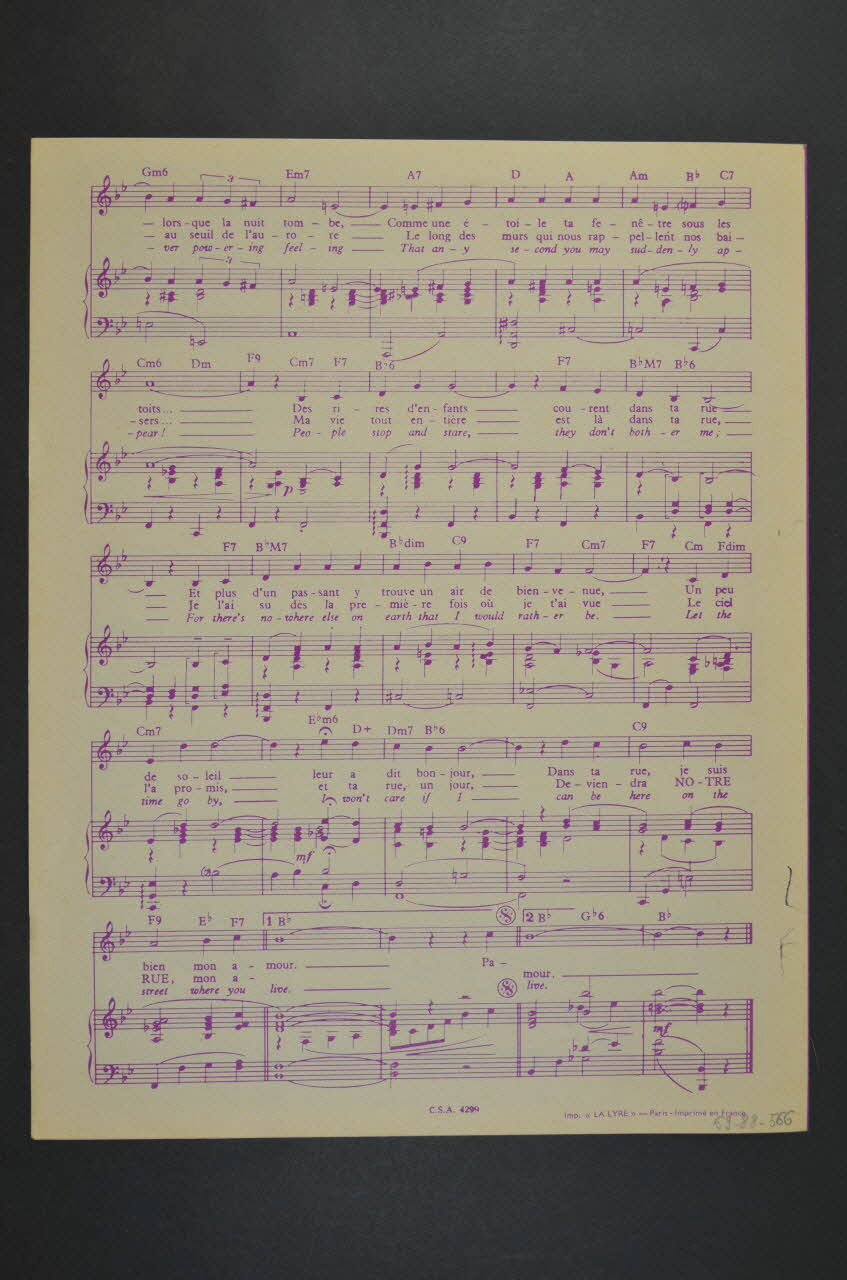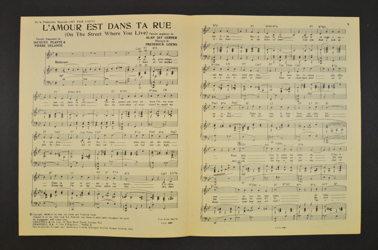 chanson, petit format, partition de musique, L'amour est dans ta rue, My Fair Lady