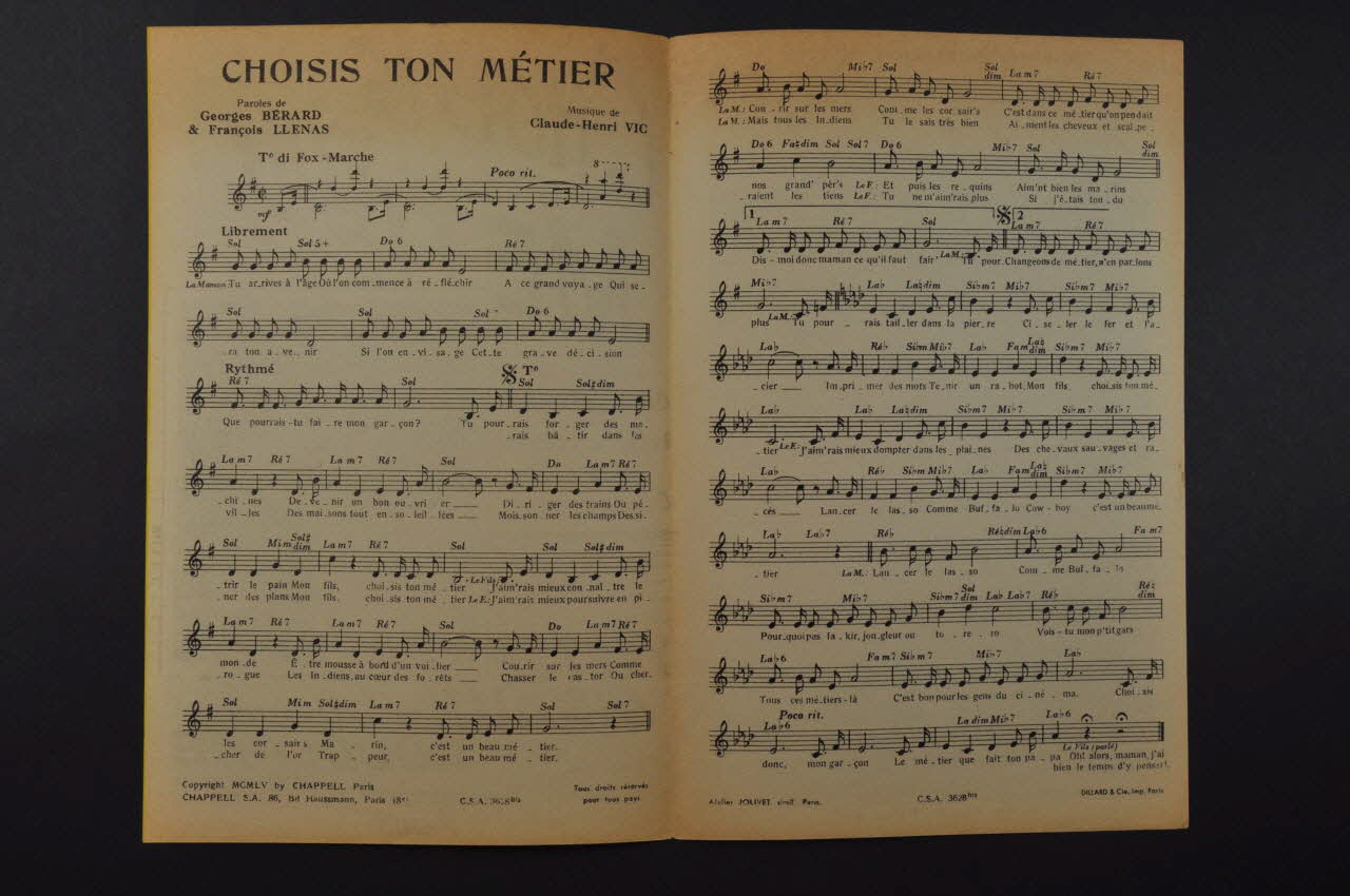 partition de musique, chanson, petit format, Choisis ton métier