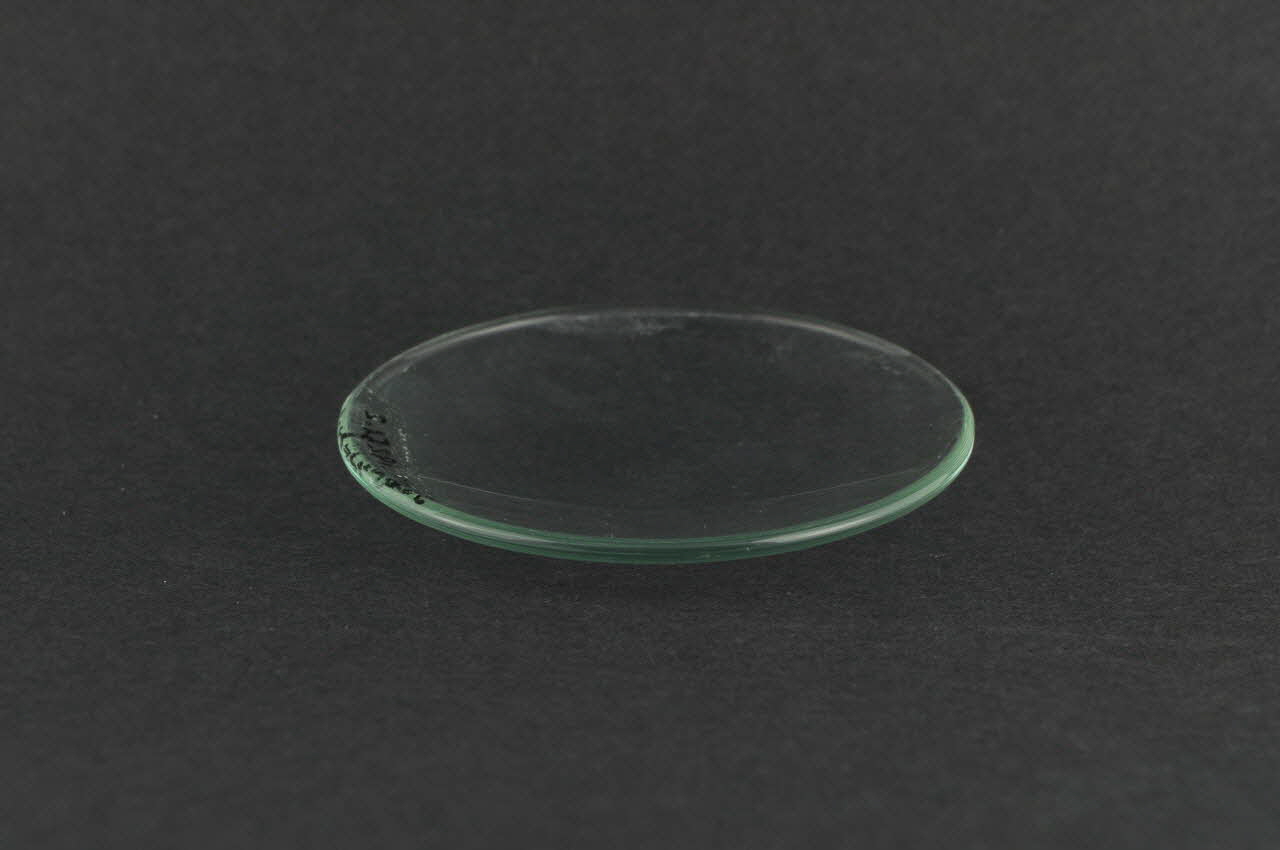 Couvercle en verre transparent, circulaire et concave.Matériaux et techniques